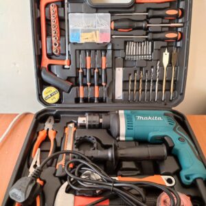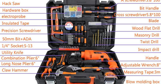 DERA Tool Box kit consists of a 750W Impact Drill with drill bits of various sizes and types, it includes a number of screw drivers of different sizes, hacksaw, a measuring tape, a hammer and a variety of other handy tools. This tool set is ideal for use in professional environment or in homes. This tool set also includes a handy box with a socket adapter. This set has a powerful impact drill, a claw hammer, different types of screwdriver and different tools which can make your work day easy, this tool set is all you are going to need while working at home on different tasks.